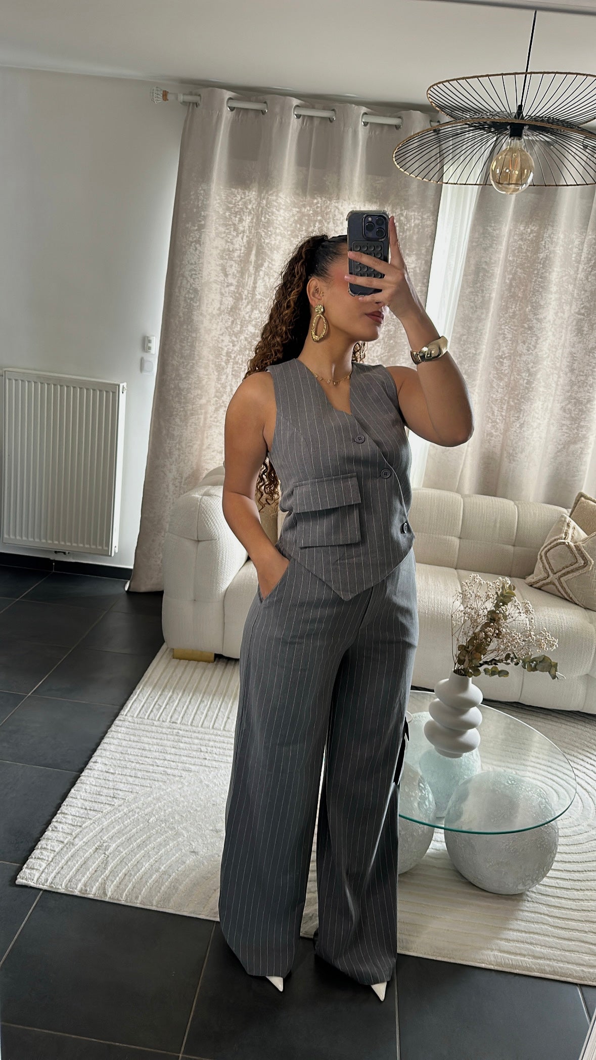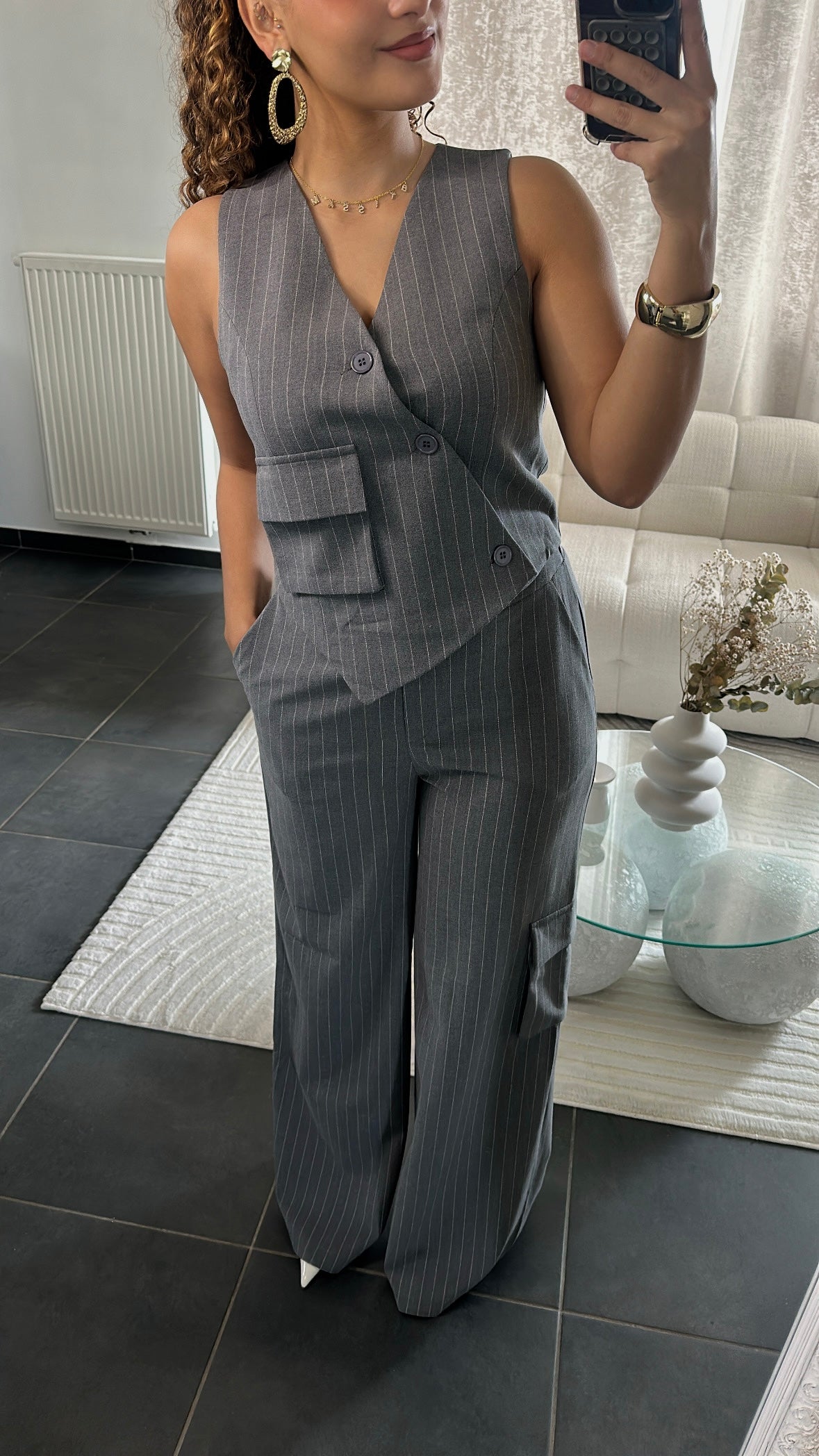Ensemble gilet à rayure gris