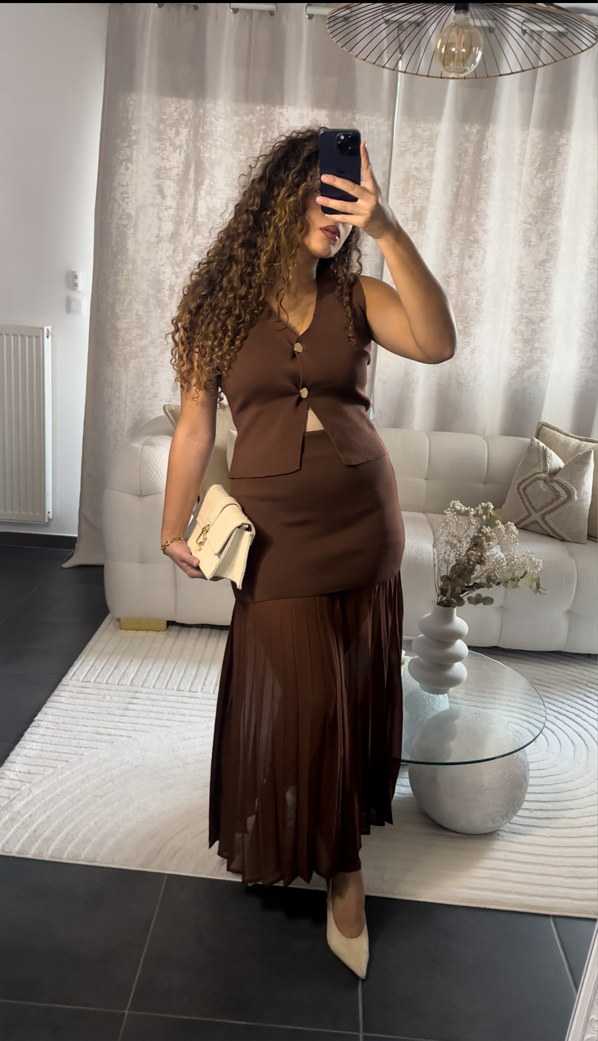 Ensemble gilet sans manche + jupe marron